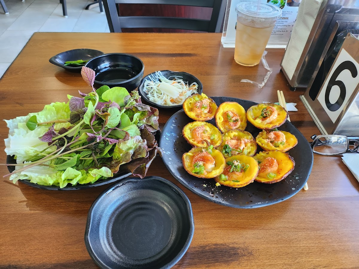 First thing I loved about this place is that they really made a real type of Banh Khot. It should be yellow, crunchy and has a half moon shape which many places are twisted it with flat shape and looks like a flat fried powder. The coconut milk escargot was ok, kinda plain and need to be more seasoned. It is a new restaurant so I think there will be room for improvement. Will come back to try other dishes.