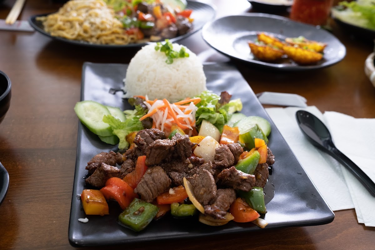 Everything we ordered was sooooo good. The egg rolls were perfectly crispy and tasty. It was my first time trying banh khot and it was so good! The garlic noodles were packed with so much flavor and had the perfect texture. The shaken beef that came with the garlic noodles was cooked perfectly and practically melted in your mouth. Last but not least the salmon was so crispy and a nice healthy choice! Loved this place. Definitely coming back. (The garlic noodles with shaken beef was so good we ordered one to go)